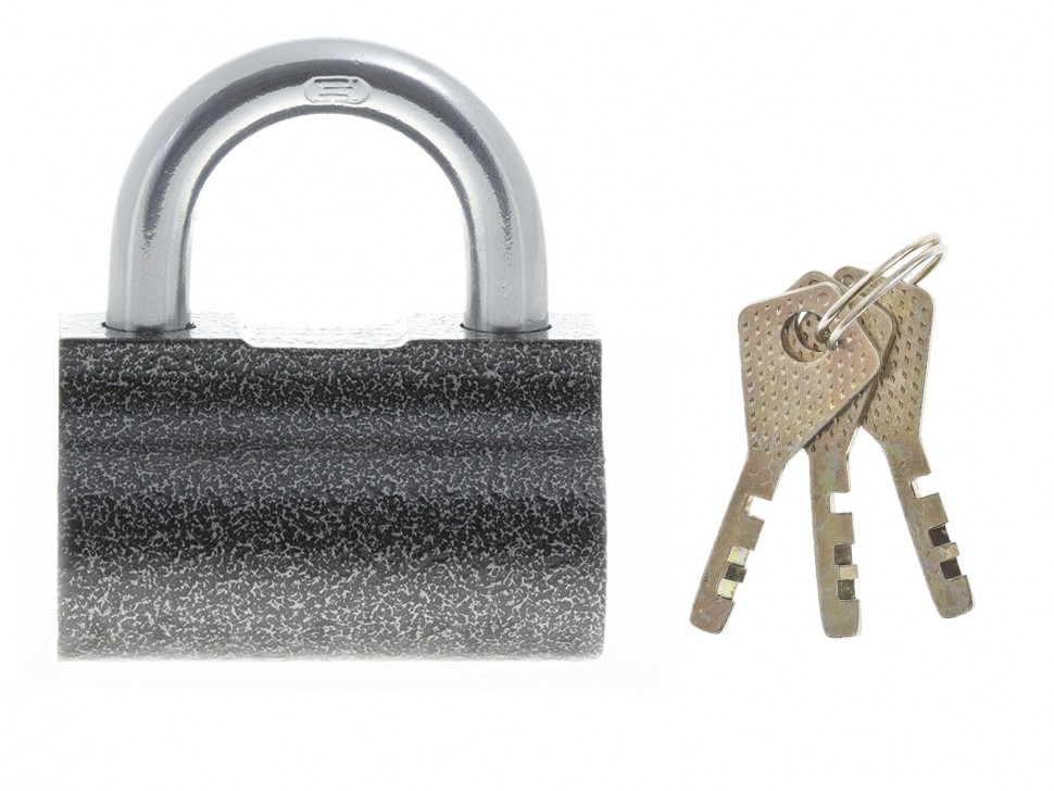 Замок навесной повышенной секретности. Общего применения. Высокопрочный корпус и стальная закаленная заглубленная дужка значительно затрудняют возможность взлома. Механизм секрета расположен сбоку. В комплекте 3 ключа.