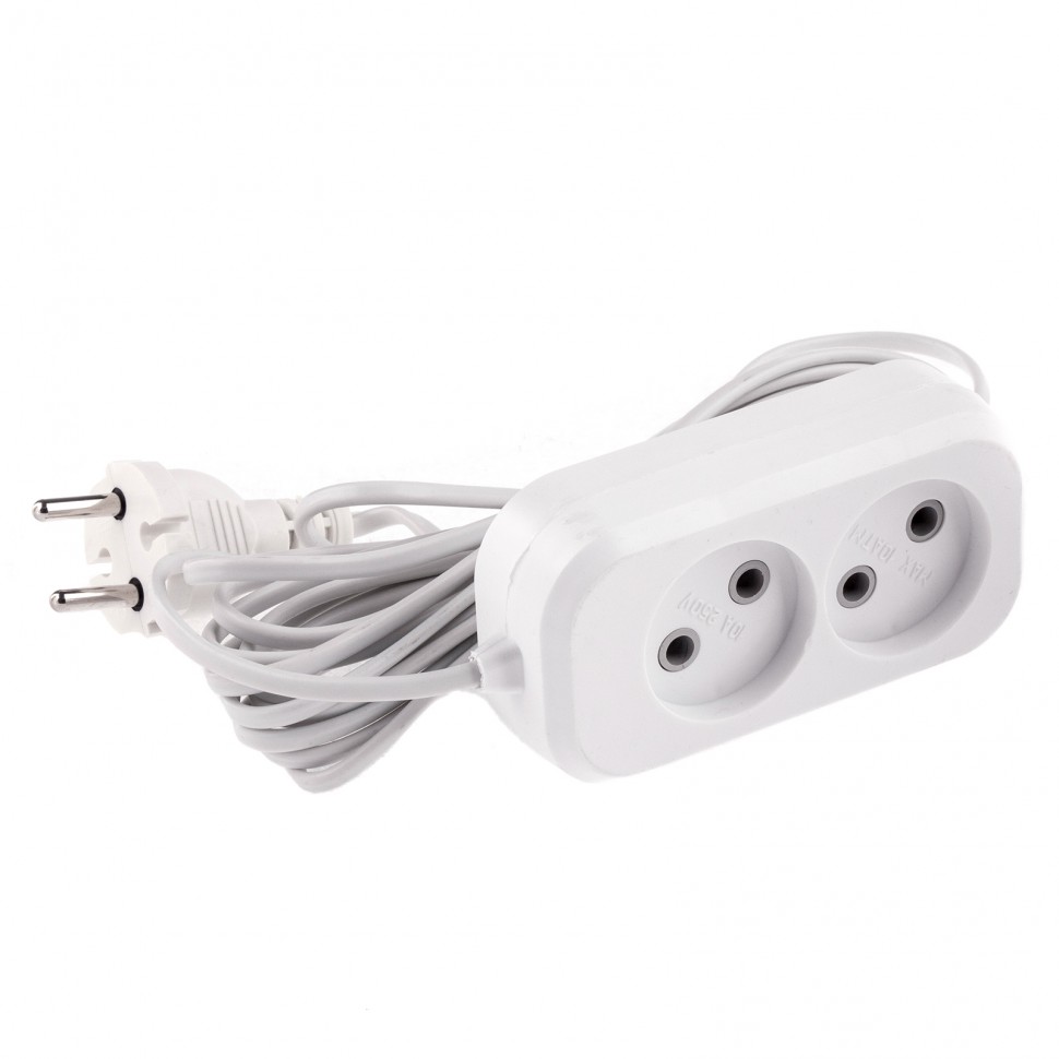 Корпус удлинителя изготовлен из белого пластика, устойчивого к механическому воздействию и износу.