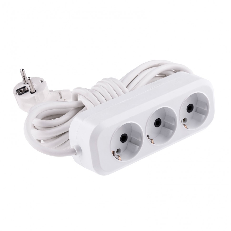 Корпус удлинителя изготовлен из белого пластика, устойчивого к механическому воздействию и износу.