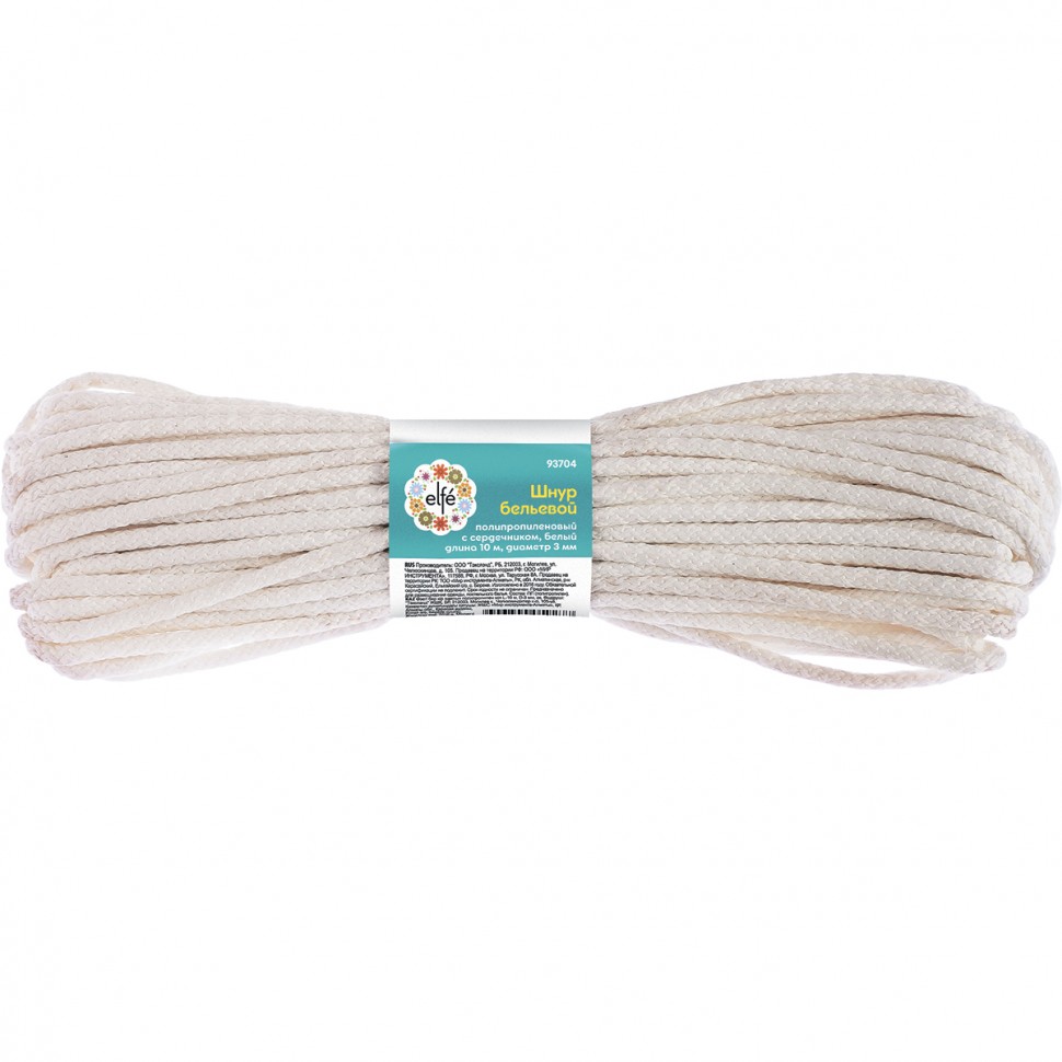 Шнур бельевой полипропиленовый с сердечником D-5 мм L-15 м, белый Elfe