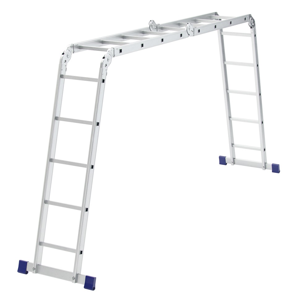 Пять рабочих положений лестницы: приставная лестница, консольная лестница для чердака, помост, стремянка или двухсторонняя стремянка.