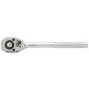 Ключ изготовлен из хромованадиевой стали. Имеет антикоррозионное покрытие из хрома. Храповый механизм с переключателем обеспечивает плавный ход и возможность быстрой смены направления вращения ключа. Присоединительный квадрат с шариковым фиксатором надежно удерживает съемные торцевые головки различных размеров, удлинители, адаптеры. Ключ снабжен механизмом быстрого сброса насадок. Ключ имеет эргономичную ручку с фрикционными ребрами, предотвращающими скольжение. Предназначен для быстрого монтажа резьбовых соединений.