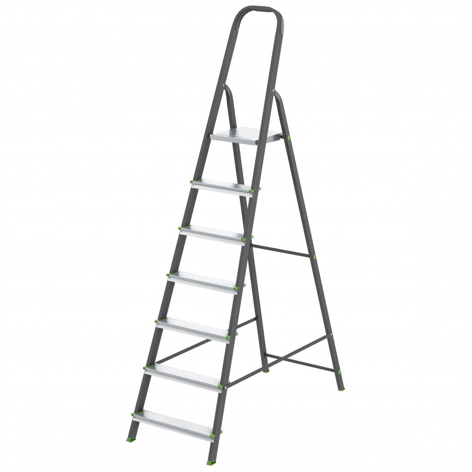Стремянка, 7 ступеней, стальной профиль, алюминиевые ступени, Россия Сибртех