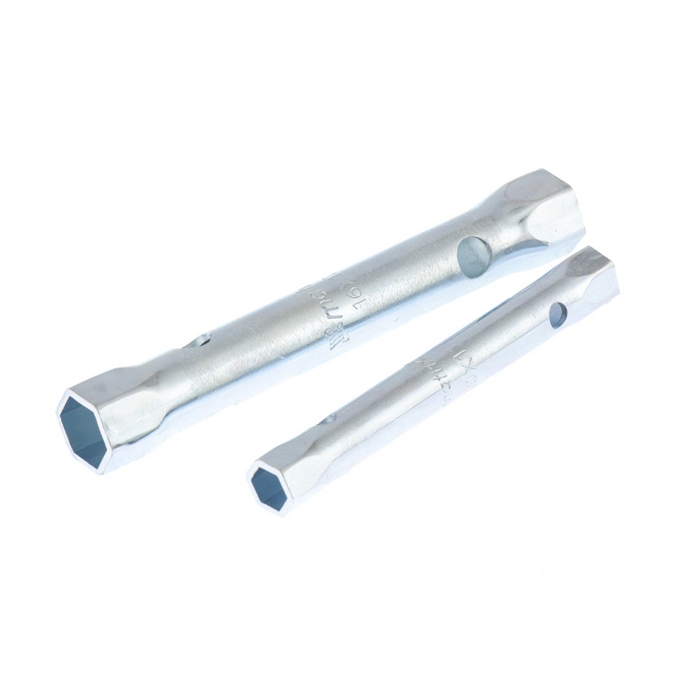 В набор входят торцевые двусторонние ключи 6 х 7, 8 х 9, 10 х 11, 12 х 13, 14 х 15, 16 х 17, 18 х 19, 20 х 22 и 1 вороток. Тонкие стенки ключей-трубок позволяют осуществлять монтаж в труднодоступных местах, когда болтовые соединения размещены в значительных углублениях. Ключи изготовлены из стали 45. Твердость материала рабочей части ключа – 41 HRC, что соответствует требованиям ГОСТа. Ключи имеют защитное покрытие из цинка. Набор упакован в сумку для удобного хранения.