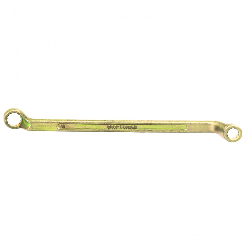 Накидные рабочие части ключа смещены относительно его рукоятки, что позволяет работать в труднодоступных местах.