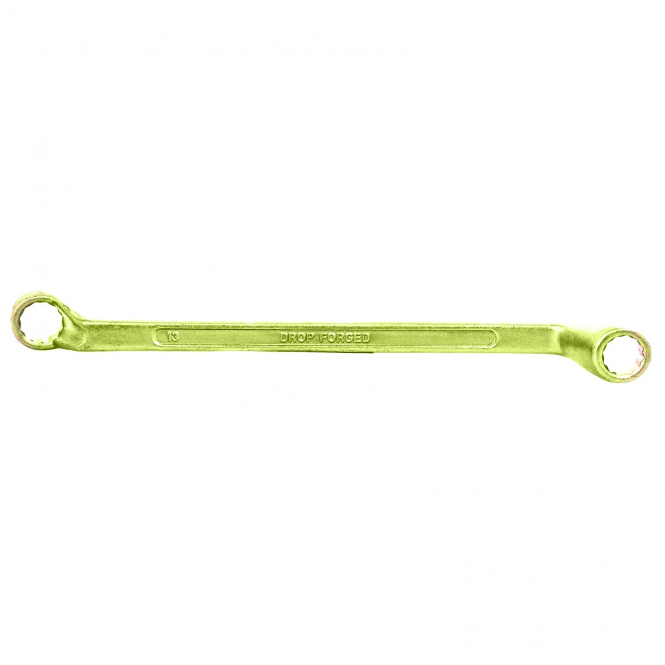 Накидные рабочие части ключа смещены относительно его рукоятки, что позволяет работать в труднодоступных местах.