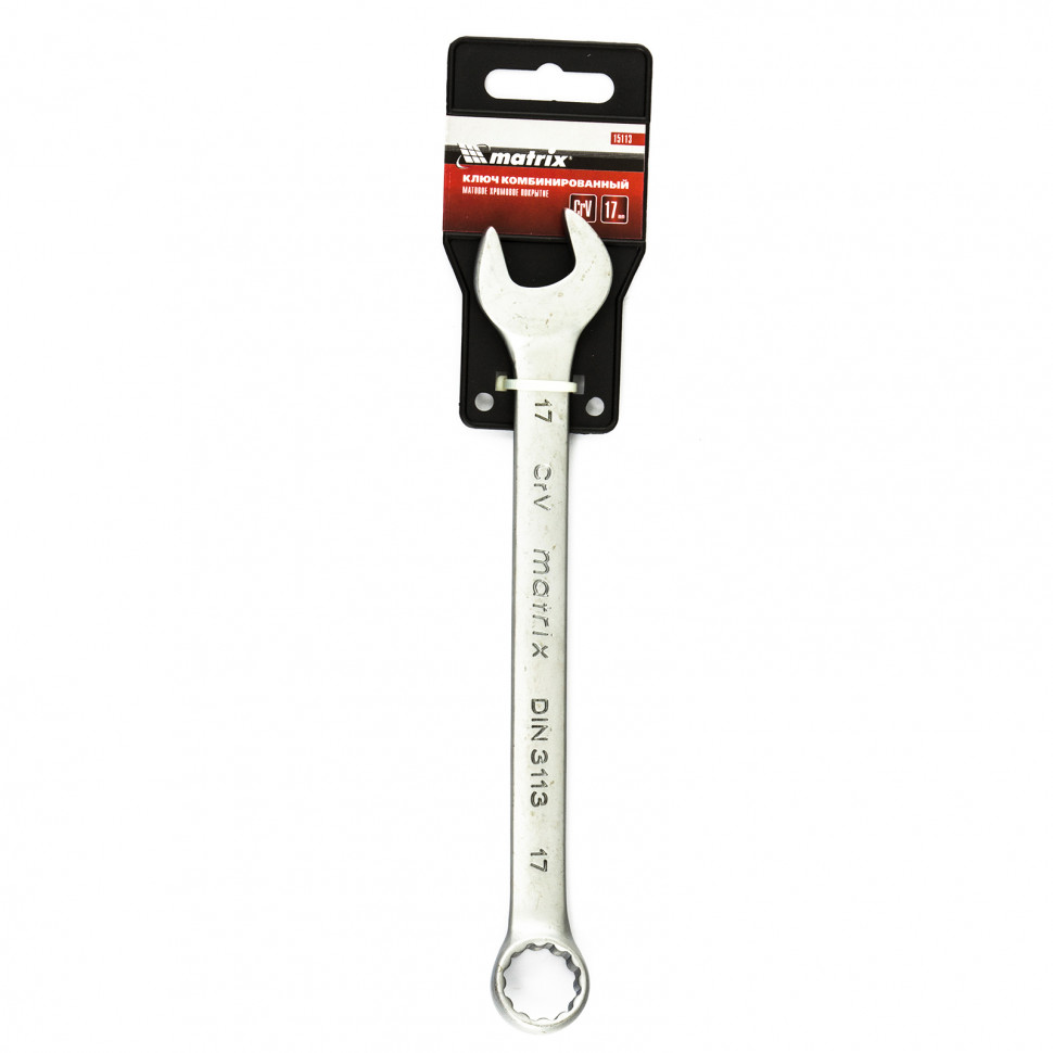 Ключ комбинированный, 17 мм, CrV, матовый хром Matrix