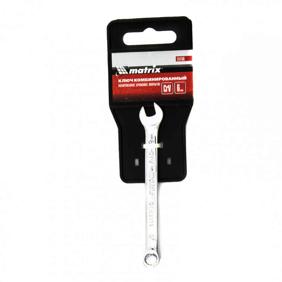 Ключ комбинированный, 6 мм, CrV, полированный хром Matrix