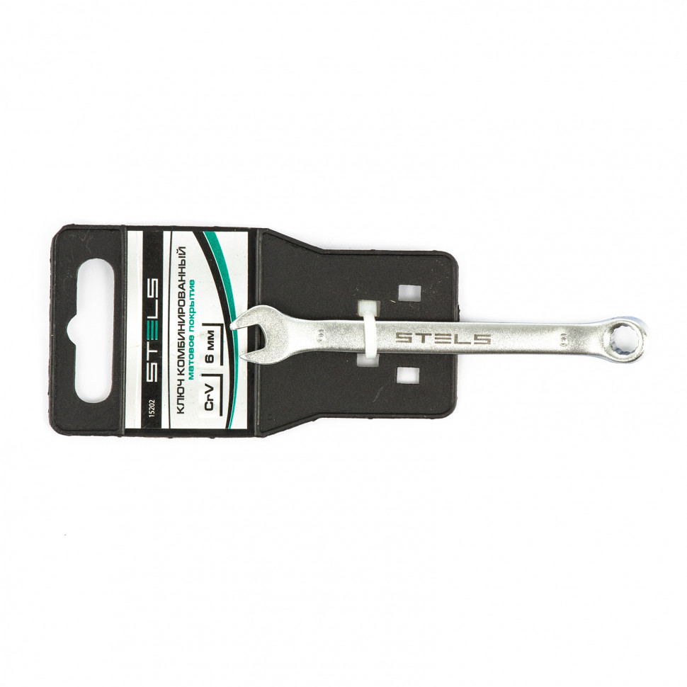 Ключ комбинированный, 6 мм, CrV, матовый хром Stels