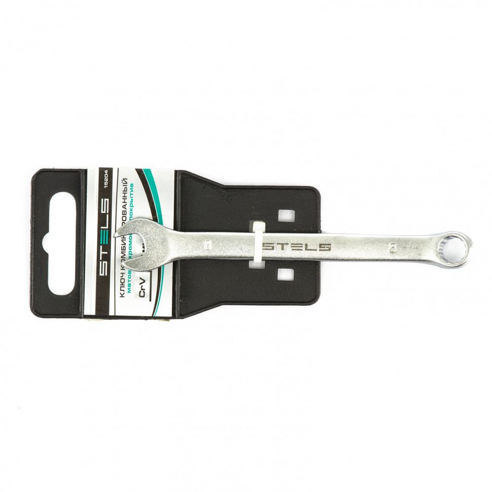 Ключ комбинированный, 8 мм, CrV, матовый хром Stels