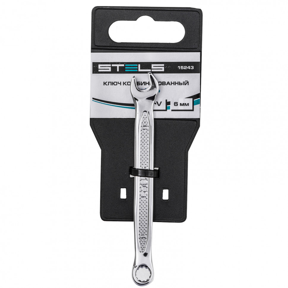 Ключ комбинированный, 6 мм, CrV, антислип Stels