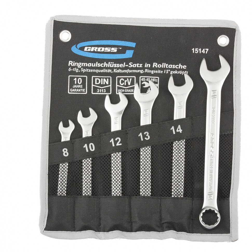 Набор ключей комбинированных 8-17 мм, 6 шт., CrV, холодный штамп Gross