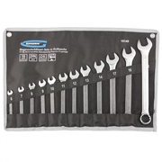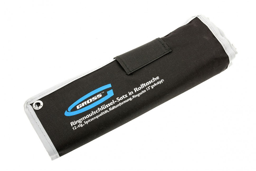Набор комбинированных ключей торговой марки GROSS предназначен для монтажа/демонтажа резьбовых соединений. Ключи набора изготовлены из высококачественной хромованадиевой (Crv) стали методом холодного штампа. Твердость 45-48 HRC. В набор входит двенадцать ключей размером от 6 до 22 мм. Каждый ключ с одной стороны оснащен захватом открытого типа — рожковым и накидным (кольцевым) с другой стороны.Профиль кольцевого зева имеет 12 граней, что увеличивает площадь соприкосновения рабочих поверхностей и снижает риск деформации граней крепежа при монтаже. Угол наклона кольцевого зева относительно плоскости ключа в 15 градусов делает монтаж более удобным. Хромоникелевое покрытие ключей улучшает антикоррозийные свойства инструмента.