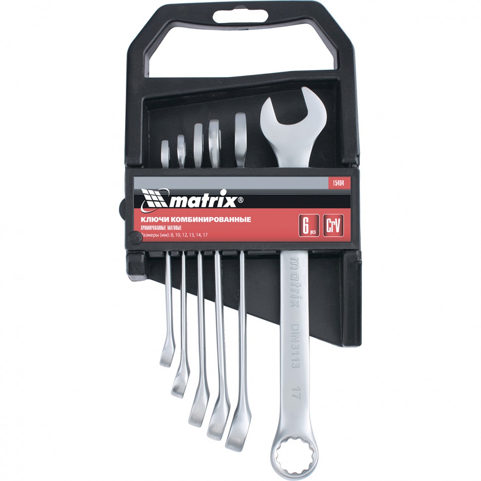 Набор ключей комбинированных, 8 - 17 мм, 6 шт., CrV, матовый хром Matrix