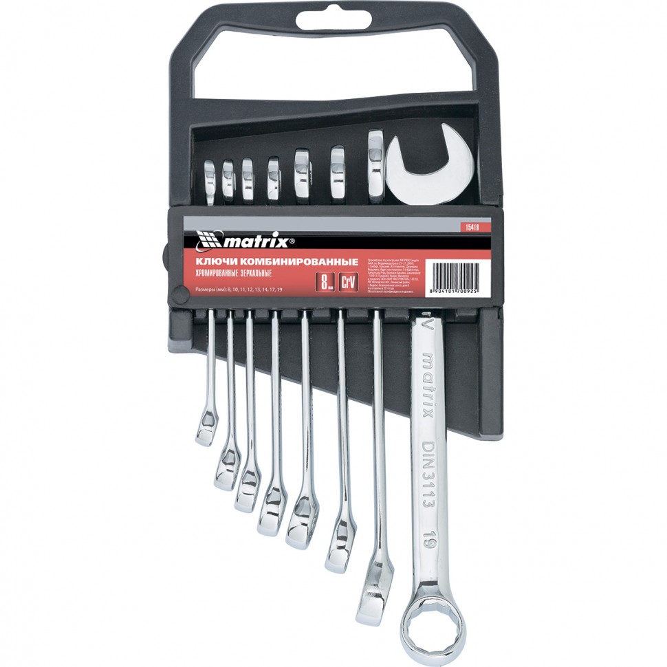 Набор ключей комбинированных, 8 - 19 мм, 8 шт., CrV, полированный хром Matrix