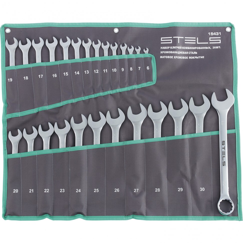 Набор ключей комбинированных 6-32 мм, 26 шт., CrV, матовый хром Stels