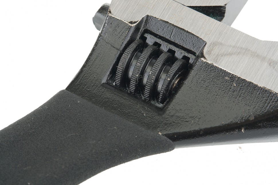 Ключ разводной изготовлен из углеродистой стали и подвергнут селективной закалке.