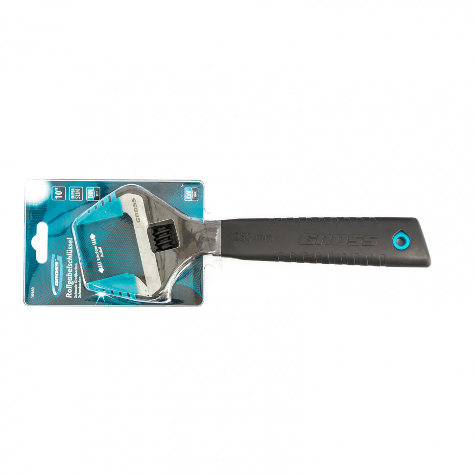Ключ разводной, 250 мм,CrV, тонкие губки, защитные насадки Gross
