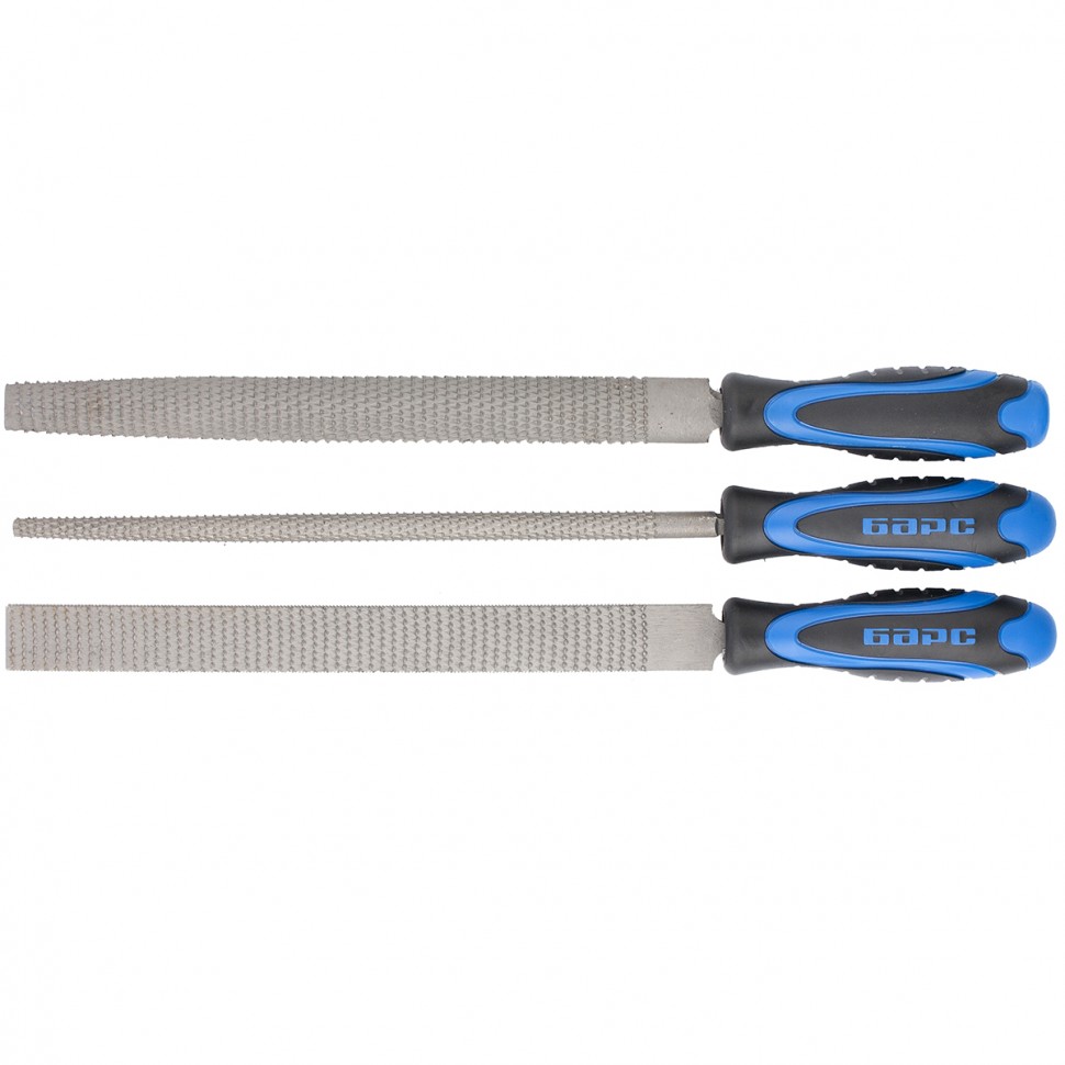 Набор напильников 200 мм, 3шт., двухкомпонентная рукоятка Барс