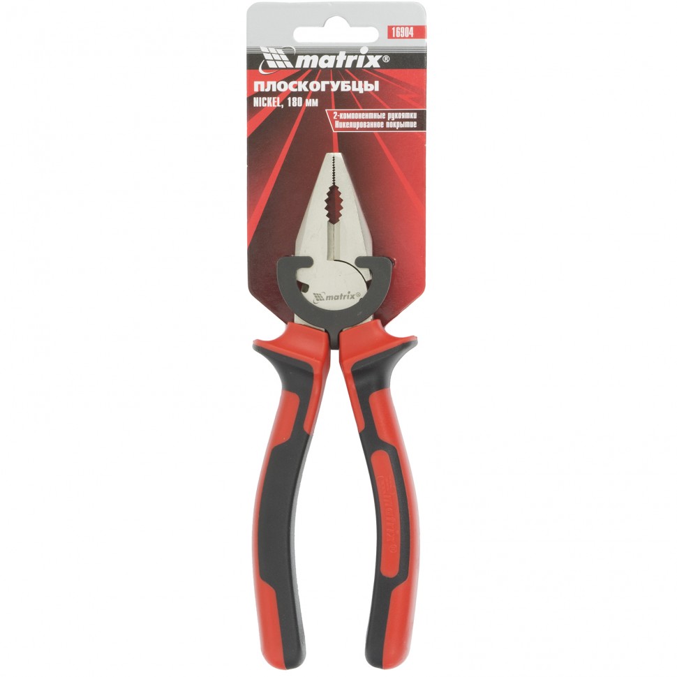 Плоскогубцы NICKEL, 180 мм, никелированные, двухкомпонентные рукоятки Matrix
