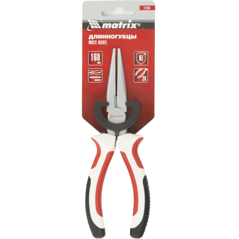 Длинногубцы White Nickel, 160 мм, прямые, никелированные, трехкомпонентные рукоятки Matrix