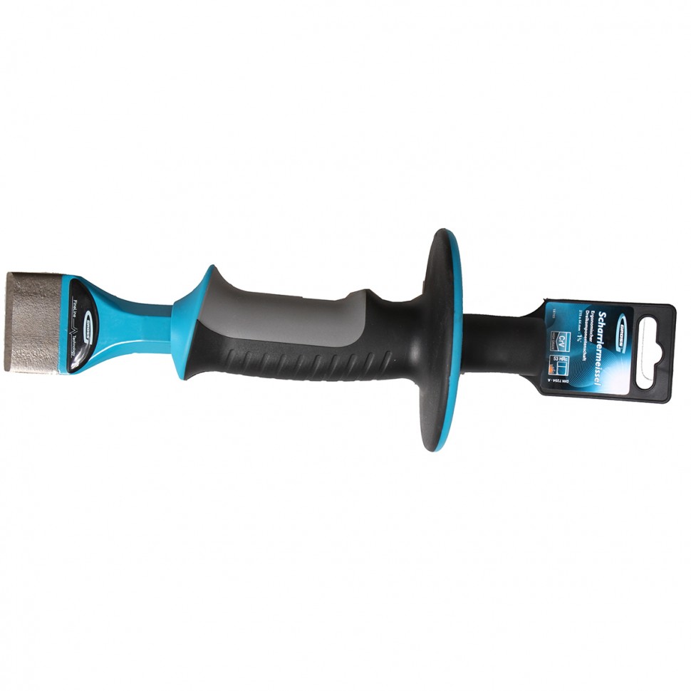 Для обеспечения безопасной работы и защиты рук от случайных попаданий по ним молотком тело зубила GROSS оснащено защитным протектором.