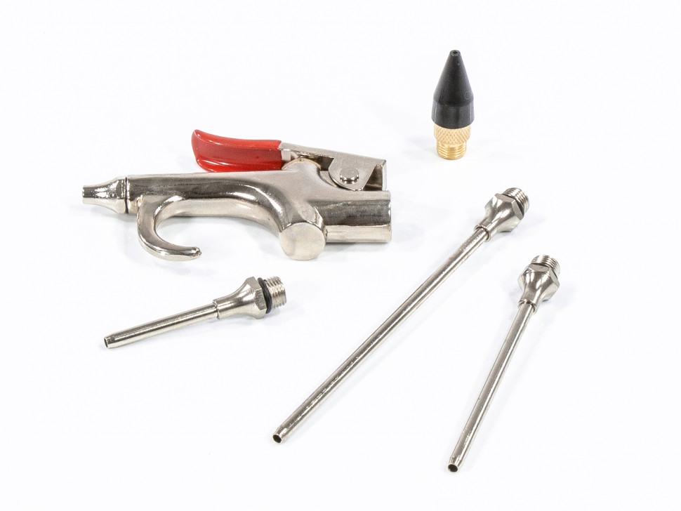 Пистолет продувочный предназначен для продувки сжатым воздухом малых отверстий и больших поверхностей.В комплекте имеется 4 различных редукционных насадок.
