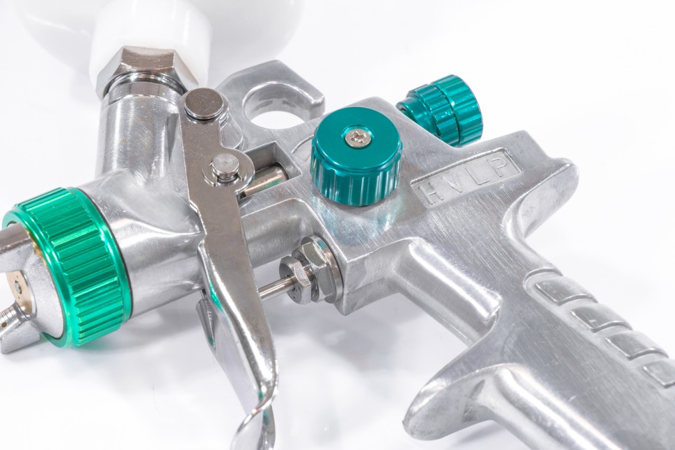 Корпус краскораспылителя имеет защитное покрытие из полированного хрома.