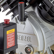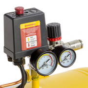 Компрессор снабжен следующими средствами контроля, управления и защиты: манометром для контроля давления сжатого воздуха, реле давления, осуществляющим запуск/остановку в зависимости от настроек, защитным клапаном, функцией автозапуска при понижении давления в ресивере ниже 6 атм.