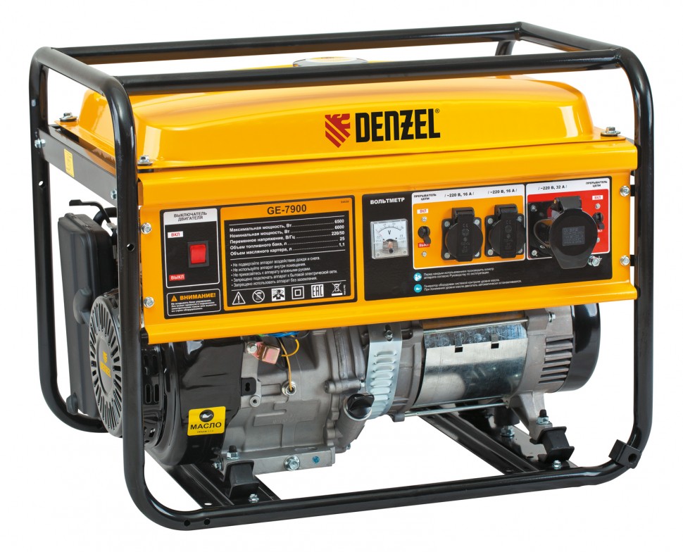 Генератор бензиновый GE 7900, 6,5 кВт, 220В/50Гц, 25 л, ручной старт Denzel