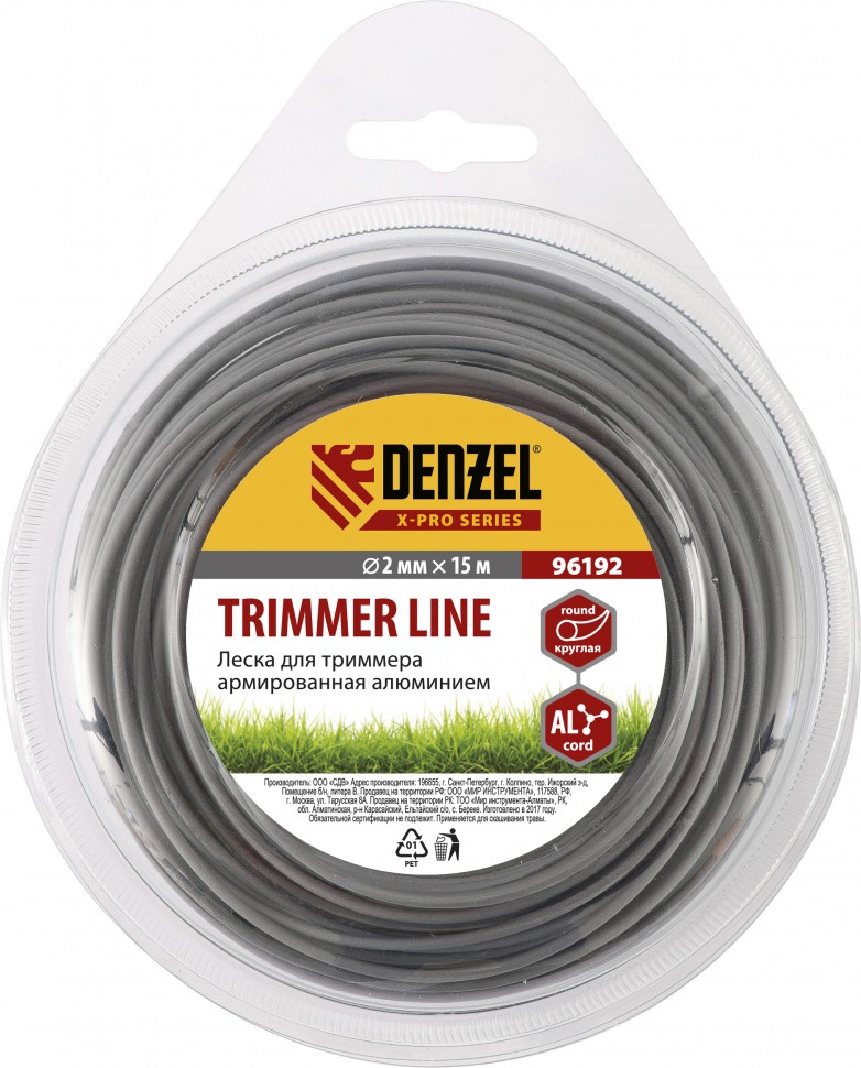 Леска для триммера армированная алюминием ,X-Pro, круглая, 2,0мм х 15м, блистер Россия Denzel