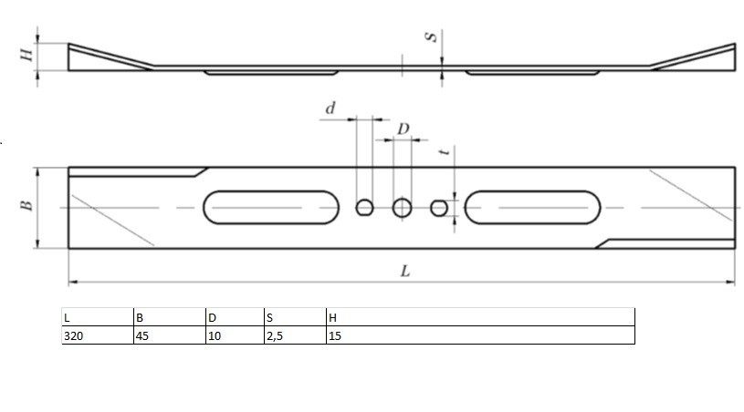 - Габариты 320 x 45 x 2,5 мм