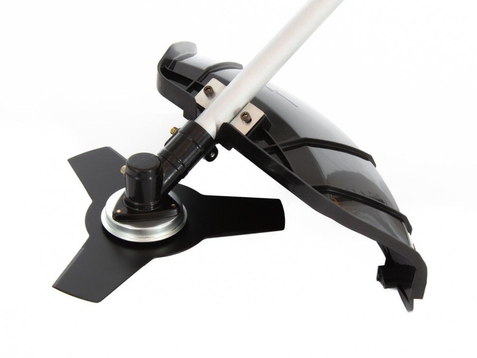 Триммер оснащен катушкой-полуавтоматом и трехлопастным диском.