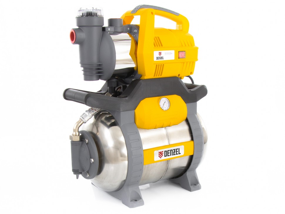 Насосная станция PSХ950X, 950 Вт, 3300 л/ч, ресивер 24 л, подъем 38 м, нержавейка Denzel