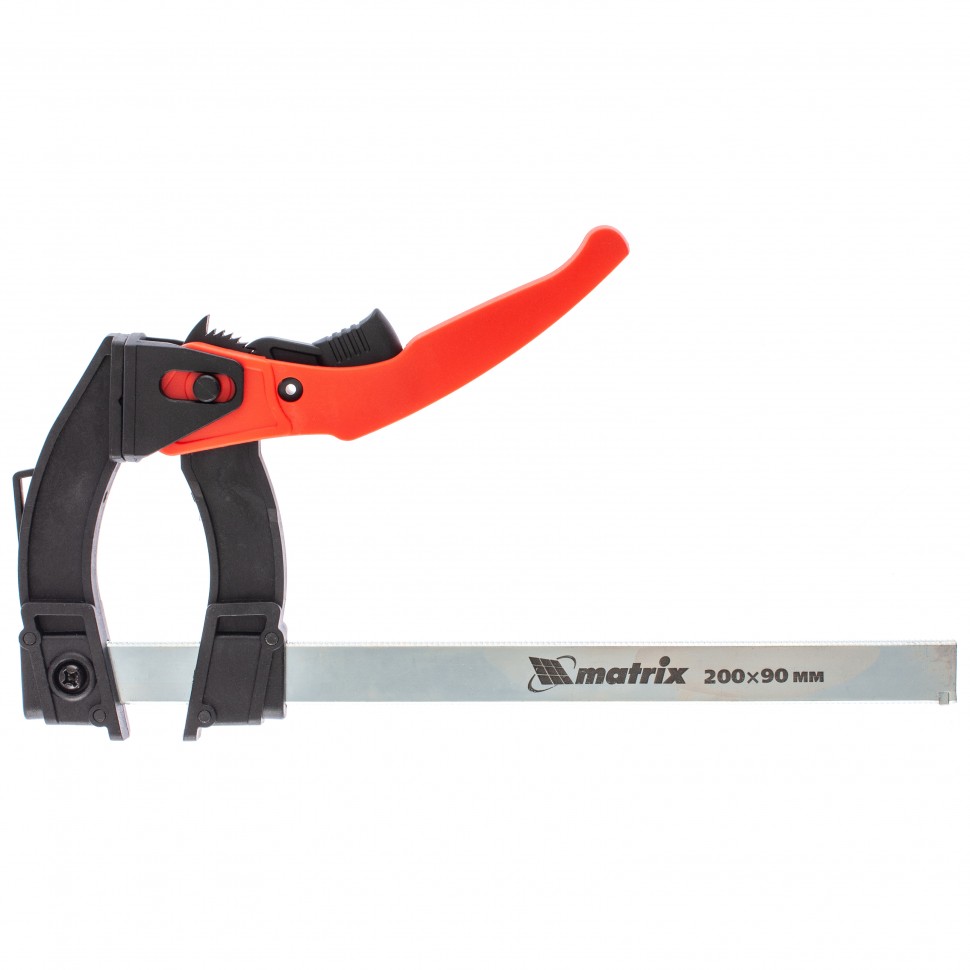 Струбцина реечная быстрозажимная,пл. корпус,рыч. храп. мех.,100х90х195 мм,штанга 5х20мм Matrix