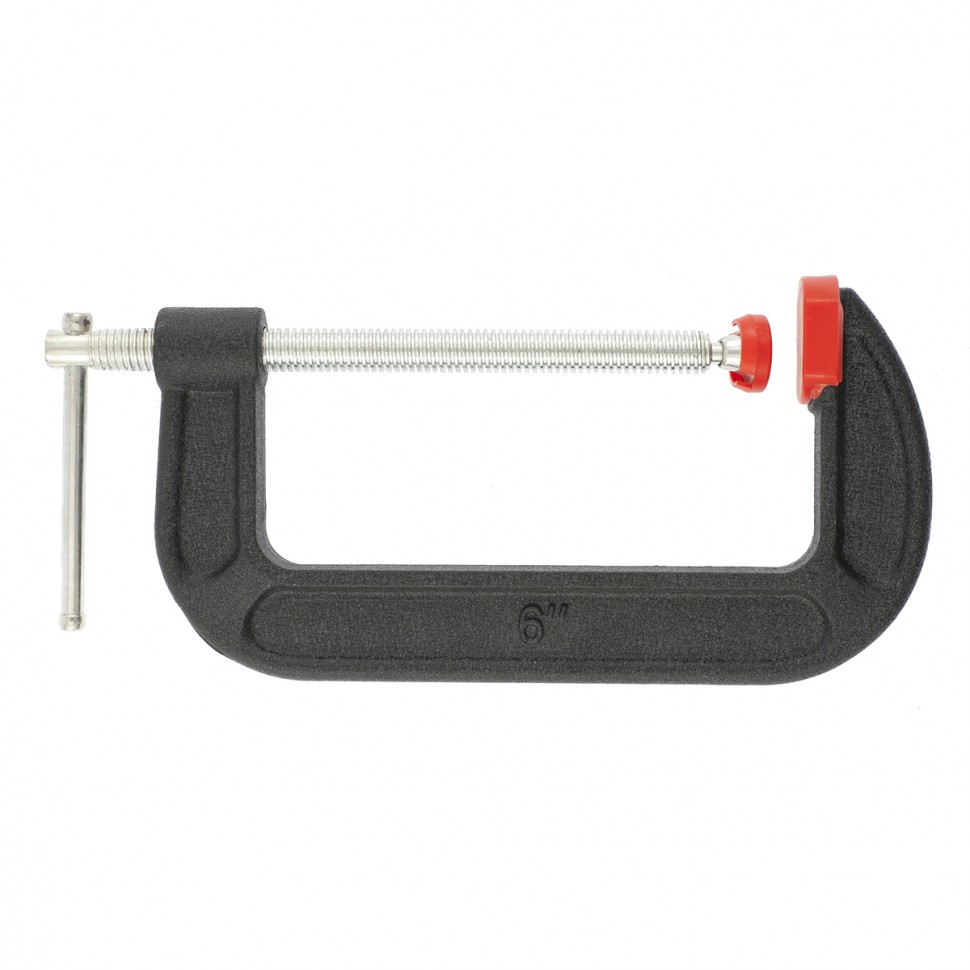 Корпус G-образной струбцины покрыт порошковой краской, стойкой к механическим повреждениям и надежно защищающей струбцину от коррозии.