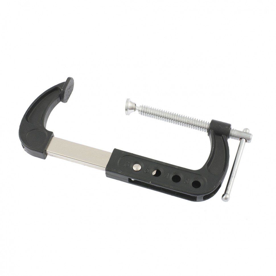 Предназначена для механической фиксации деталей при склейке, а также крепления заготовок на верстаках и станках во время столярных и слесарных работ.Характеристики: быстрая смена величины зева,изготовлена из углиродистой стали, имеет порошковое покрытие корпуса, максимальное усилие при затягивании составляет- 453кг.