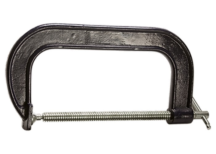 Винт струбцины со специальным зажимом и крупной червячной резьбой позволяет надежно фиксировать предметы.