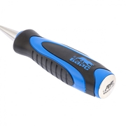 Эргономичная форма двухкомпонентной рукоятки препятствует скольжению в руке, а металлический затыльник можно использовать при работе с молотком.