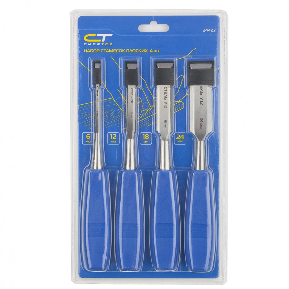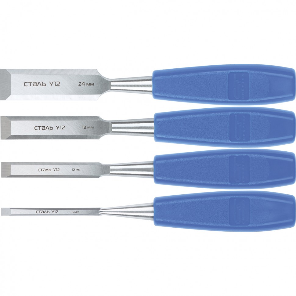 Набор стамесок плоских, 4 штуки, 6-12-18-24 мм Сибртех