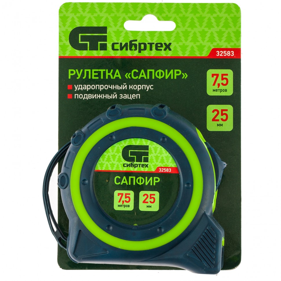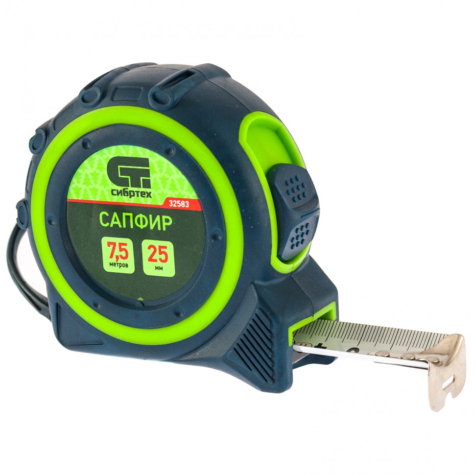 Рулетка Сапфир, двухкомпонентный корпус, 7,5 м х 25 мм Сибртех