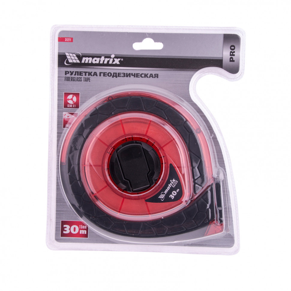 Рулетка геодезическая 30 м х 15 мм, закр. корп., фибергласс. лента, двухст. шкала, PRO Matrix