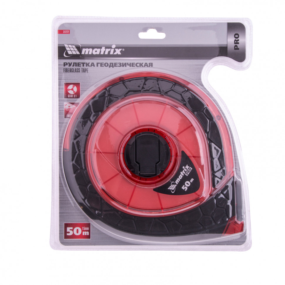 Рулетка геодезическая 50 м х 15 мм, закр. корп., фибергласс. лента, двухст. шкала, PRO Matrix