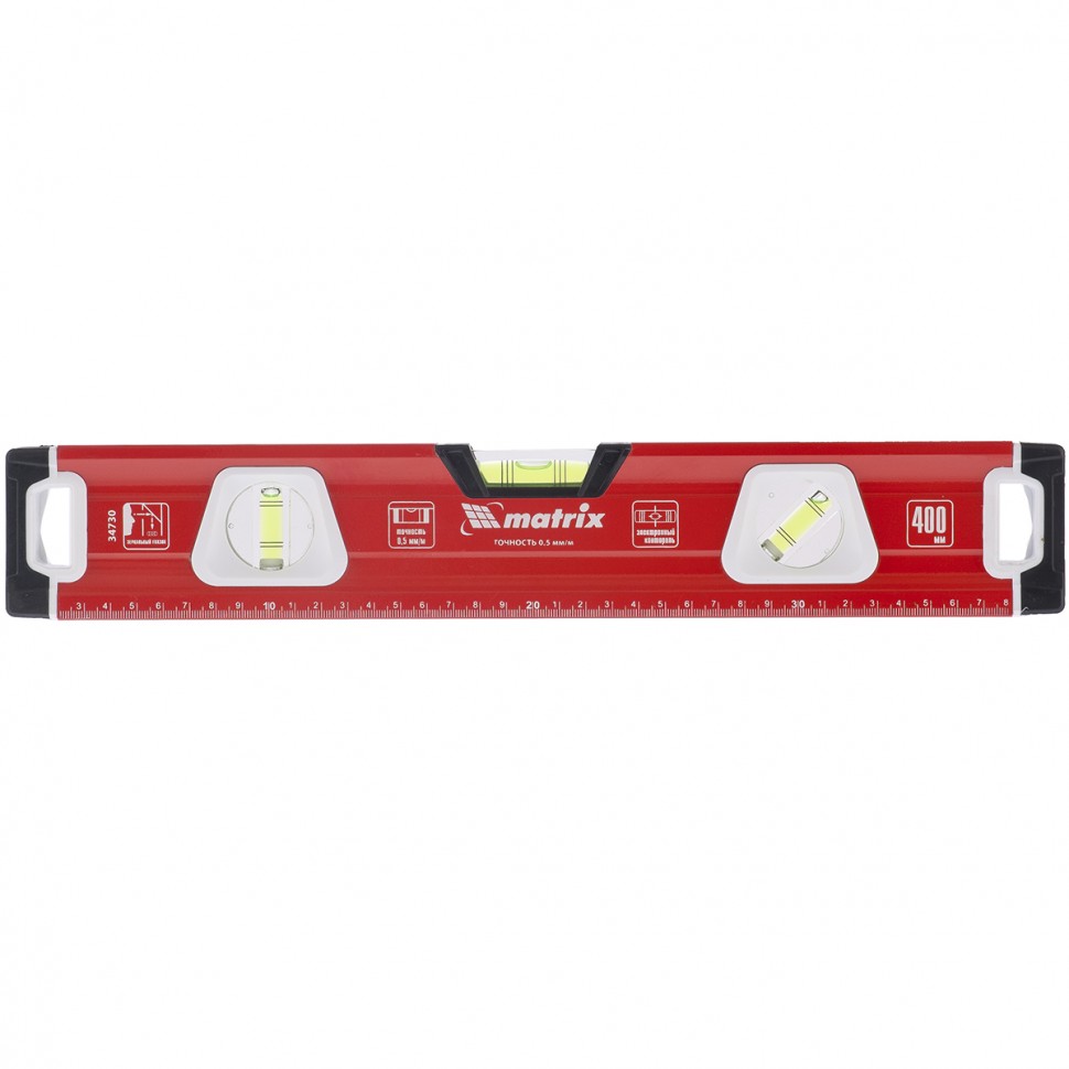 Уровень алюминиевый, магнит., фрезерованный, 3 глазка (1 зеркал.), 400 мм Matrix