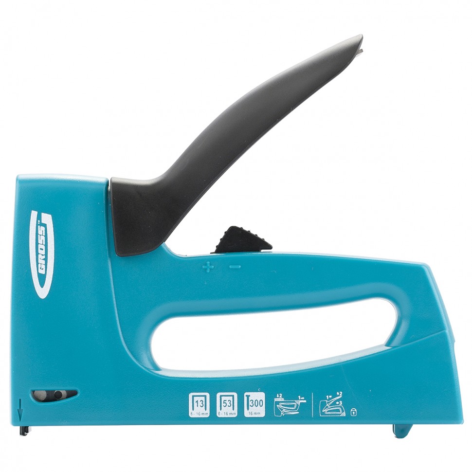 Степлер мебельный, пластиковый корпус,регулировка удара, тип скобы 13, 53, 300, 6-16мм Gross