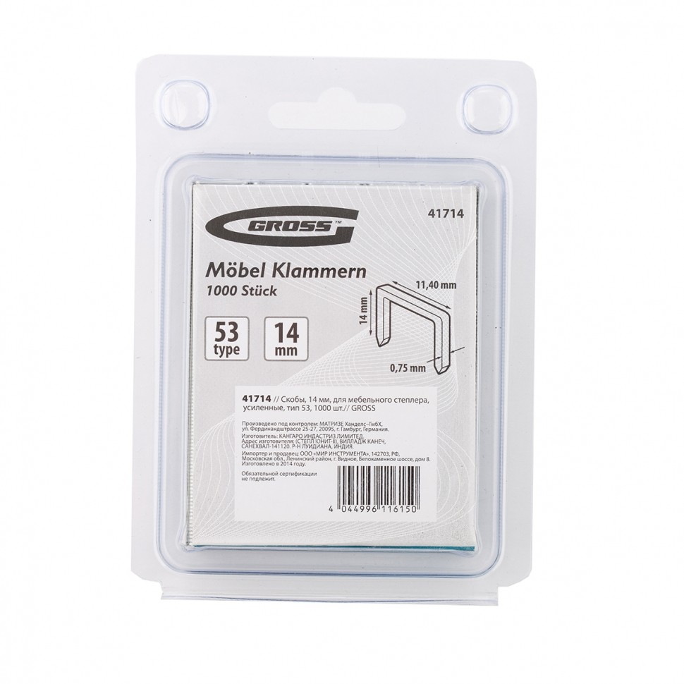 - Тип товаров GROSS Скобы для степлера