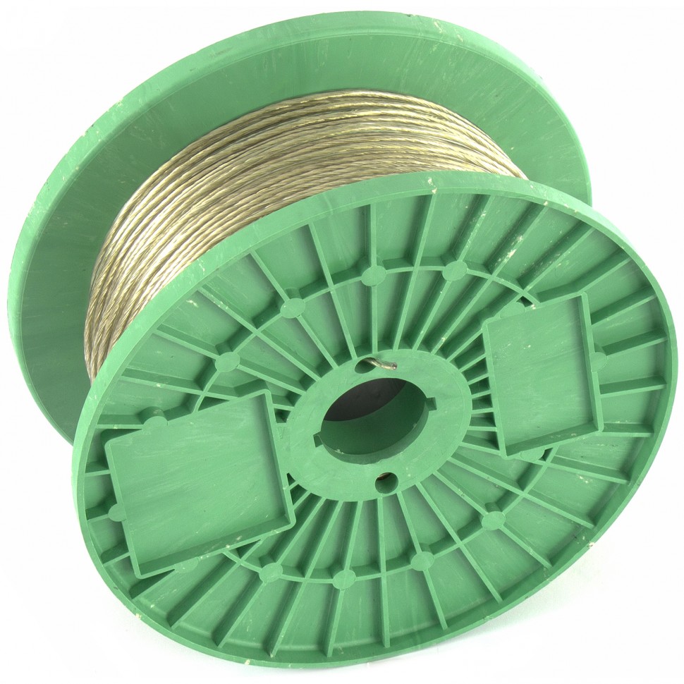 Трос изготовлен из стальной латунированной проволоки и покрыт пластикатом ПВХ методом экструзии, что делает его более устойчивым к окислению.