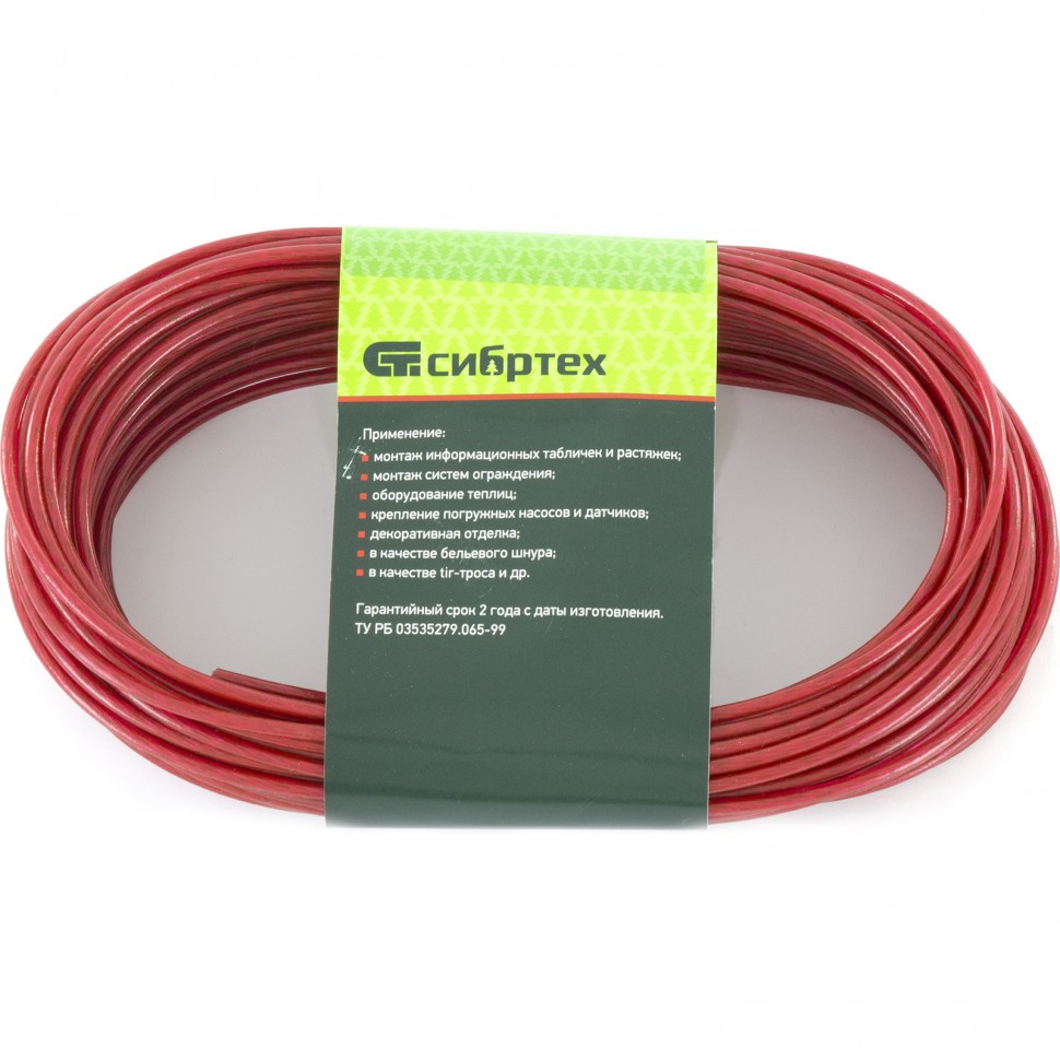 Трос металлополимерный красный ПР-3.0, (3,0мм толщина, моток 20м.п.), Россия Сибртех