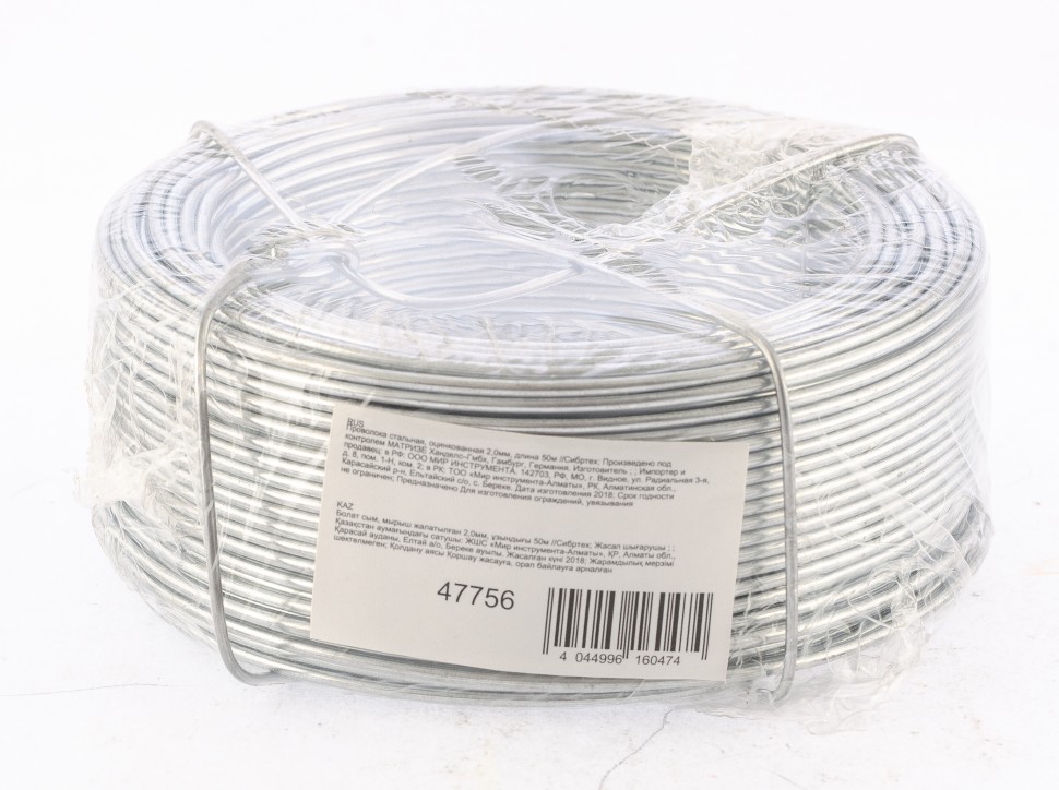 Проволока стальная, оцинкованная 2,0 мм, длина 50 м Сибртех