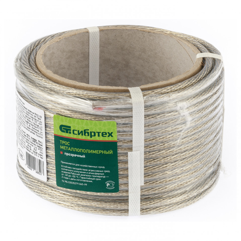 Трос металлополимерный прозрачный ПР-6.0, (6,0мм толщина, моток 20м.п.), Россия Сибртех